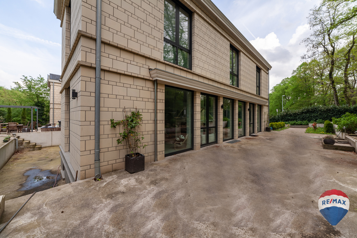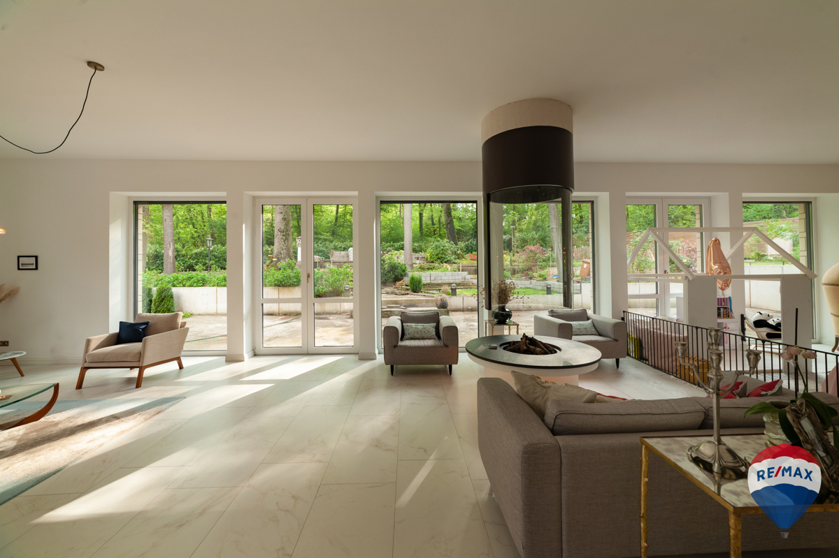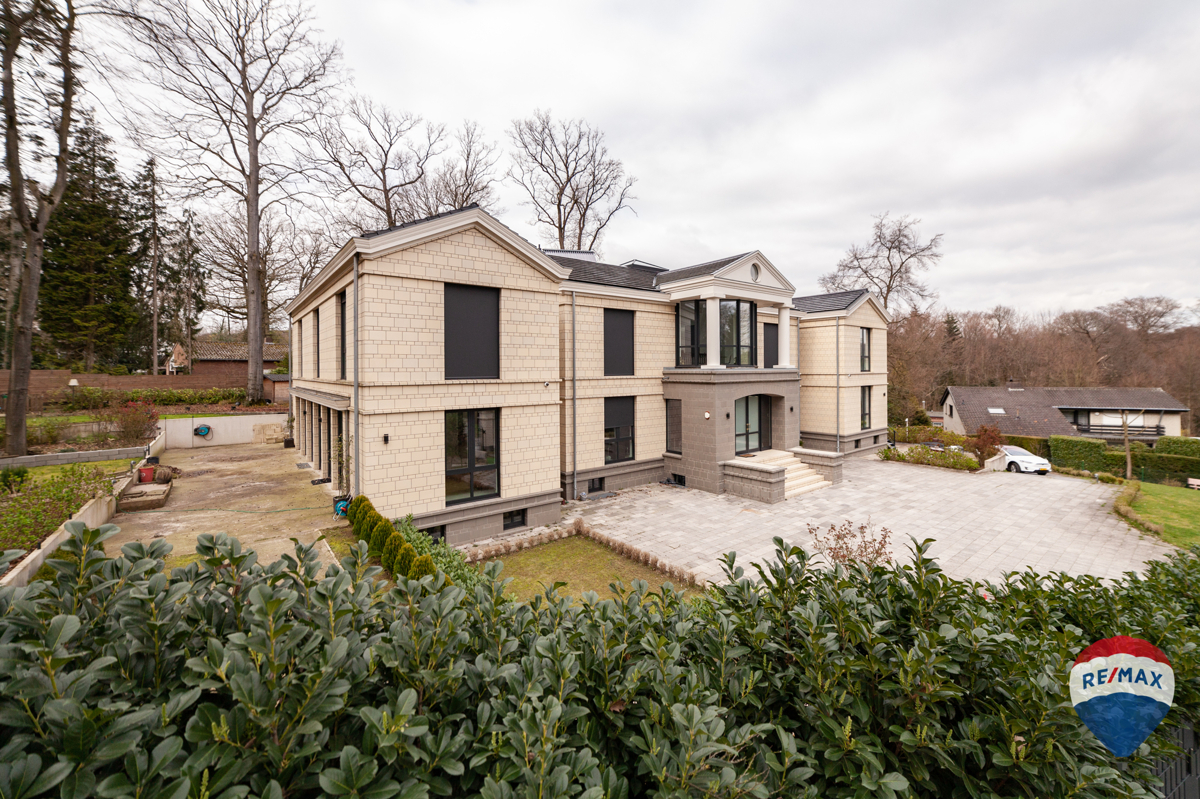Dieses Objekt besticht durch Eleganz und ist außen wie innen konsequent im modernen Stil gehalten und beeindruckt durch ein strukturiertes sowie ein großzügiges Wohnkonzept. Die gradlinige Architektur, umgesetzt mit edlen und hochwertigen Materialien, unterstreicht die Luxuriösität dieser Einheit. Großzügige Raumhöhen, ein stimmiges Lichtkonzept und der architektonisch toll durchdachte Grundriss prägen die Atmosphäre und sind nur einige Pluspunkte dieses hochwertigen Anwesens. Mit einem Aufzug erreichen Sie komfortabel auch von der Tiefgarage aus jede einzelne Wohnebene. Die im Jahre 2014 errichtete Villa liegt in einer der besten Wohnlage von Kleve mit himmlischer Sicht ins Grüne. Das Grundstück in einer Größe von 2.693m² verleiht der Immobilie die Möglichkeit im besonderen Maße zur Geltung zu kommen. Die unverbaubare Weitsicht mit der Natur vor der Türe und die Zentralität vor Ort, wird Sie begeistern. Die äußerst großzügig bemessene Wohnfläche von 966 m² verteilt sich über zwei Etagen und eröffnet den zukünftigen Bewohnern zahlreiche Gestaltungs- und Nutzungsmöglichkeiten. Derzeit wird eine Haushälfte als Einliegerwohnung genutzt. Hier böte sich natürlich auch eine gewerbliche Nutzung an oder ideal auch als Mehrgenerationenhaus. Über den großzügigen Eingangsbereich gelangt der Interessent in die geräumige Diele, die den Blick auf die imposante Treppenanlage und die Galerie freigibt. Von hier aus gelangt man ins geräumig konzipierte Wohnzimmer, lichtdurchflutet durch großzügige Fensterfronten. Der individuell gestaltete, offene Kamin sorgt für atmosphärische Akzente. Das derzeit genutzte Esszimmer befindet sich im Erkerbereich und befindet sich praktischerweise neben der Küche. Auch diese lässt keine Wünsche offen und unterstreicht das anspruchsvolle Wohnkonzept. Zweiseitig wurde die hochwertige Einbauküche integriert und mit einer offenen Kochinsel versehen. Optional kann die EBK von den jetzigen Besitzern übernommen werden. In der rechten Haushälfte wurde eine stilsichere und luxuriöse Einliegerwohnung geschaffen. Diese verfügt über ein geräumiges Wohnzimmer, Küche, 2 Schlafzimmer, Gäste-WC und ein luxuriöses Badezimmer.