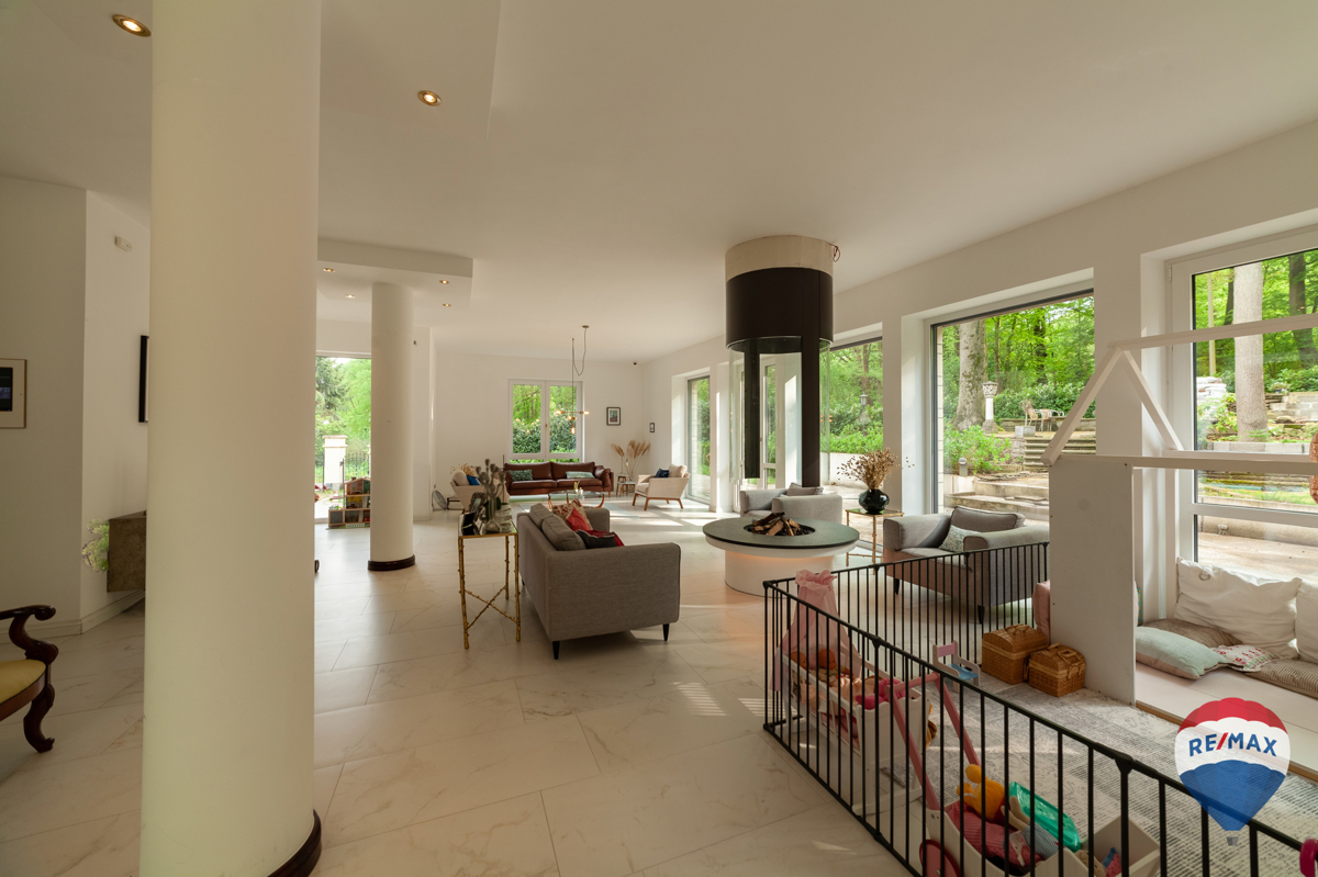 Das Obergeschoss, erreichbar über die imposante Treppenanlage, beherbergt insgesamt sechs Räumlichkeiten zur individuellen Nutzung. Derzeit befindet sich dort ein großzügiges Schlafzimmer mit separatem Ankleidebereich. Praktischerweise grenzt hier das luxuriöse Badezimmer an, ausgestattet mit den teuersten Materialien. Zwei derzeitig genutzte Kinderzimmer verfügen ebenfalls über ein eigenes Badezimmer. Drei weitere Räumlichkeiten, allesamt hochwertig ausgestattet, stehen für Sie bereit.