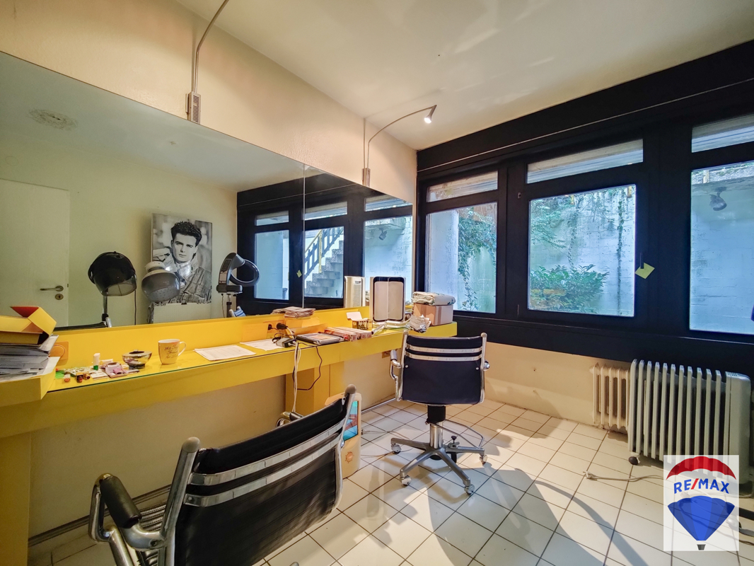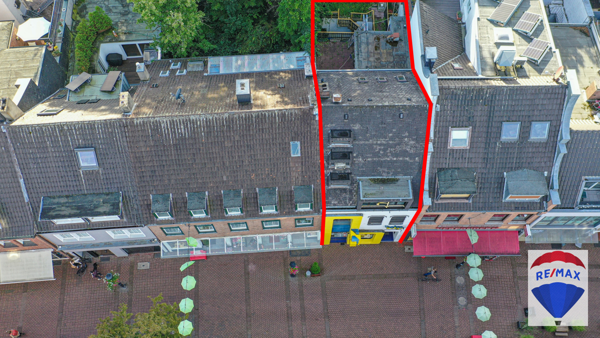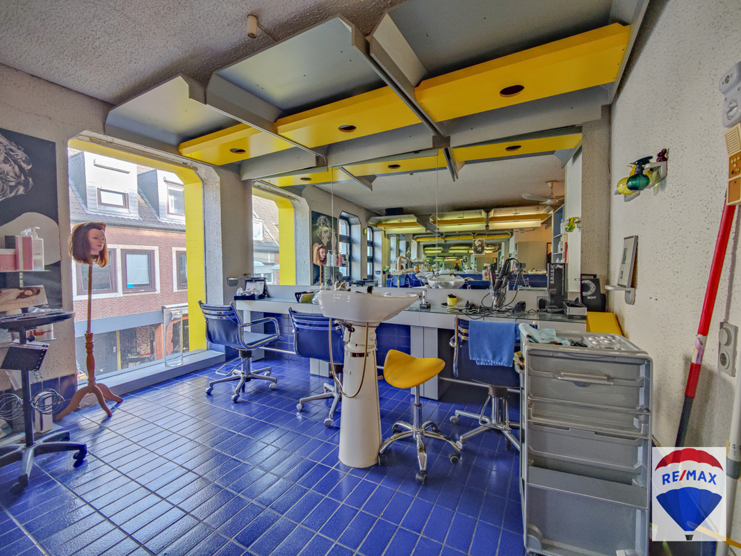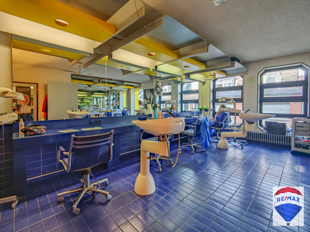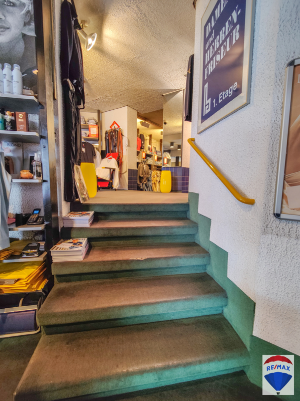 Dieser Gebäudekomplex beherbergte in der Vergangenheit im Erdgeschoss eine Gewerbeeinheit, eine Boutique mit angrenzender Teeküche und Wirtschaftsraum. Seit den 1970er Jahren befand sich dort der Friseursalon "Helga" mit kleiner Boutique und seinem bereits verdientem, guten Ruf. Ein haushohes "h" prangt an der Fassade und sorgt für unverwechselbare Sichtbarkeit. Das Erdgeschoss weist eine Gewerbefläche von 101 m² aus, das 1. und 2. Ober- und das Dachgeschoss verfügen über ca. 199 m² Wohnfläche.